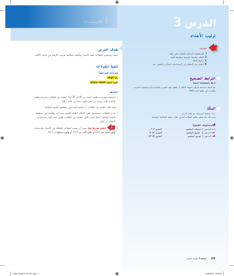 تحميل حل درس ترتيب الأعداد الرياضيات للصف الثالث تحميل من هنا